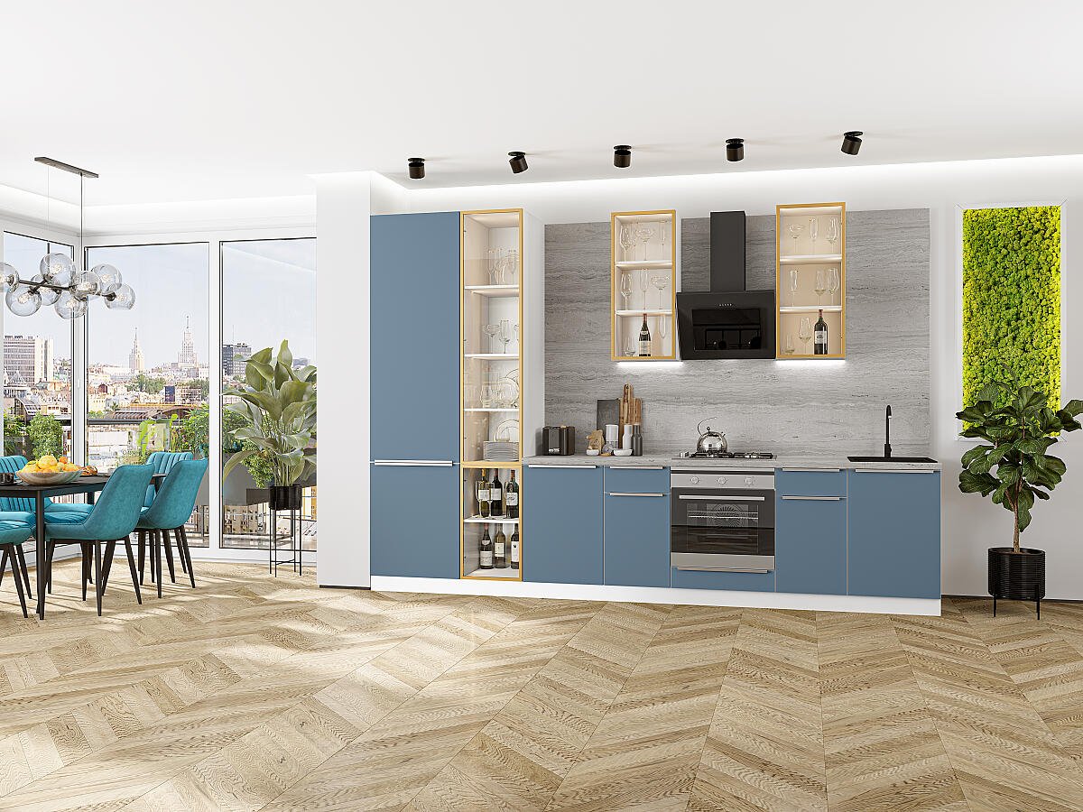 Фьюжн-08 (2340х3400х600) Белый/Silky Blue исполняется в классическом стиле и спокойных цветах. Модель сочетает в себе простоту и функциональность, но при этом не выглядит громоздко. Она гармонично впишется в пространство, не утяжеляя его.