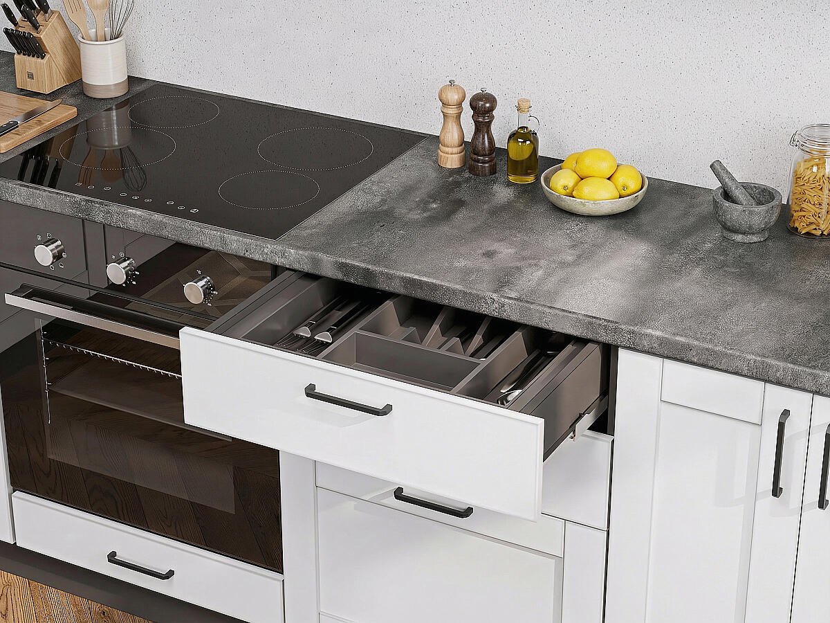 На выбор покупателя влияет конфигурация помещения, целевое назначение, общая площадь. Производитель предусмотрел вариант посекционного приобретения изделий с разными показателями глубины (диапазон 350 — 480 мм).