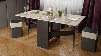 Покупали для маленькой гостиной, осознавая его размеры. функцию стола выполняет отлично. удобно. Удобно пользоваться сидя на диване, 6 человек свободно садятся. В сложенном состоянии почти не занимает драгоценное место.