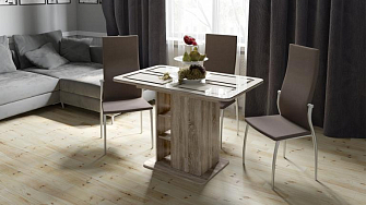 Выбор обычной или раскладной интерпретации зависит от габаритов комнаты, где ее устанавливают. В просторное помещение выбирают монументальный стол. Для компактной кухни, где часто собираются гости, покупают мебель с механизмом для увеличения обеденной зоны. Производителем предлагаются: